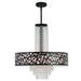 This spectacular bronze five light pendant will take your home decor to the next level. Inspired by a bird nest the laser-cut metal sheath surrounds an oatmeal fabric hardback shade with strands of glistening clear crystal.