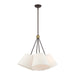 The Prato collection is both modern and versatile. The hand-crafted oatmeal colored fabric hardback shade sets a pleasant mood. The four-light shade cluster adds character to this handsomely styled pendant. Perfect fit for the living room, dining room, kitchen and bedroom. This sleek design is shown in a bronze finish with an antique brass finish accent.