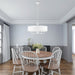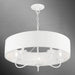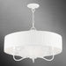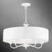 The five-light Edinburgh pendant chandelier combines floral details and casual elements to create an updated look. The hand-crafted off-white fabric hardback pleated drum shade is set off by an inner silky white fabric that combines with chandelier-like white finish sweeping arms which creates a versatile effect. Perfect fit for the living room, dining room, kitchen or bedroom.