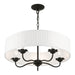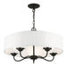 The five-light Edinburgh pendant chandelier combines floral details and casual elements to create an updated look. The hand-crafted off-white fabric hardback pleated drum shade is set off by an inner silky white fabric that combines with chandelier-like black finish sweeping arms which creates a versatile effect. Perfect fit for the living room, dining room, kitchen or bedroom.