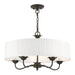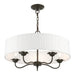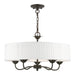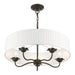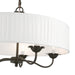 The five-light Edinburgh pendant chandelier combines floral details and casual elements to create an updated look. The hand-crafted off-white fabric hardback pleated drum shade is set off by an inner silky white fabric that combines with chandelier-like English bronze finish sweeping arms which creates a versatile effect. Perfect fit for the living room, dining room, kitchen or bedroom.