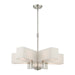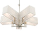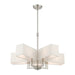 This chandelier from the Rubix collection has a crisp, clean look and contemporary appeal. The angular arms feature a brushed nickel finish. The oatmeal fabric hardback shades offers warm light for your surroundings.