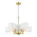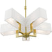 This chandelier from the Rubix collection has a crisp, clean look and contemporary appeal. The angular arms feature a satin brass finish. The off-white fabric hardback shades offers warm light for your surroundings.