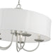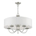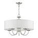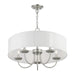 The five-light Brookdale pendant chandelier combines floral details and casual elements to create an updated look. The hand-crafted off-white fabric hardback drum shade is set off by an inner silky white fabric that combines with chandelier-like brushed nickel finish sweeping arms which creates a versatile effect. Perfect fit for the living room, dining room, kitchen or bedroom.