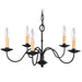 The clean design of this steel construction five light chandelier is enhanced with a black finish. The sweeping arms create a slim silhouette from which the candelabra bulbs emit their soft, romantic glow. Its informal, transitional beauty works well with many room decor schemes.