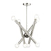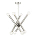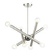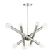 The Stafford collection inherits the multidirectional lines inspired by the Sputnik. The exposed bulbs glimmer at the end of each arm to create a movement in a modern space. The timeless design will fill any room with a playful mood. This eight-light chandelier would look great suspended in the living room, a modern dining room or over the countertop. It is presented in a brushed nickel finish with a black chrome accent.