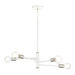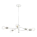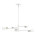 Simplicity and attention to detail are the key elements of the Bannister collection. The dimensional form, exposed bulbs and combination of finishes adds a playful mood to a contemporary or urban interior. This five-light asymmetrical chandelier design gives a new face to a kitchen, dining room, living room or a bedroom. It is shown in a white finish with brushed nickel accents.