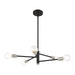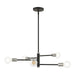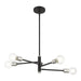 Simplicity and attention to detail are the key elements of the Bannister collection. The dimensional form, exposed bulbs and combination of finishes adds a playful mood to a contemporary or urban interior. This five-light asymmetrical chandelier design gives a new face to a kitchen, dining room, living room or a bedroom. It is shown in a black finish with brushed nickel accents.