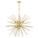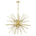The Tribeca large nine light foyer pendant chandelier will become an attention-grabbing feature in your modern home decor. The soft gold finish with polished brass finish accents grace the design with elegance and charm, providing a traditional quality to the appearance. The iron pipe rods gives the pendant chandelier a sleek and attractive style.