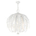 The name for the Acanthus collection is inspired by the simple beauty of the Acanthus leaf. The lights are hidden behind the graceful leaves to create a romantic warm indirect effect. Finished off in a distressed antique white finish, this five-light shabby chic chandelier is embellished with a clear crystal ball. This strong, alluring piece will provide warm glow to your dining room, kitchen, bedroom or living room to create a casual romantic atmosphere.