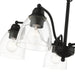 Whether it`s style or practical lighting, this chandelier is the perfect addition to your kitchen, dining room or bedroom. This five-light fixture from the Montgomery Collection can be converted to a semi flush mount to accommodate most ceiling heights. It features clear hand-blown glass shades and is shown in a black finish. The clean graceful curves of this piece complement the shade, creating a transitional look that works well in most decors. Classic elegance combines with contemporary appeal to enhance any home in style.