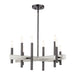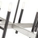 The clean lines of the Denmark collection remind of early modern Scandinavian style. The slim candles rise on the contrasting bar at different heights dynamically emulating the shape of a city skyline. This eight-light exposed bulb chandelier comes in a black chrome finish with brushed nickel finish bars. Versatile enough for almost any interior where dramatic statement is needed such as a foyer, dining room, living room or bedroom.