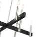 The clean lines of the Denmark collection remind of early modern Scandinavian style. The slim candles rise on the contrasting bar at different heights dynamically emulating the shape of a city skyline. This eight-light exposed bulb chandelier comes in a brushed nickel finish accented with black finish bars. Versatile enough for almost any interior where dramatic statement is needed such as a foyer, dining room, living room or bedroom.