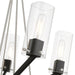 Illuminate your home with bright designs from the Beckett collection. This five light chandelier emulates a mid-century modern style made popular in the 50s and 60s. The brushed nickel frame is accented with black accents and rounded corners clear square glass shades, helping to fully complete this look.