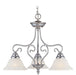 Classic brushed nickel three light chandelier paired with white alabaster glass. Timeless in its vintage appeal, this light is stylish for both new and restored homes.