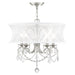 Add glamour to your home with this enchanting shaded chandelier. Scrolling arms adorned in a brushed nickel finish are paired with glittering crystal drops that reflect light when illuminated. A white handmade silk shimmer shade completes this chic design.