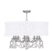 Add glamour to your home with this enchanting shaded chandelier. Scrolling arms adorned in a brushed nickel finish are paired with glittering crystal drops that reflect light when illuminated. A white handmade silk shimmer shade completes this chic design.