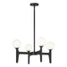 Scriben The Scriben family with an edgy design will stand out in any location. Aged Gold Brass or Matte Black finish both with opal glass. With four sizes of chandeliers and one flush mount pared with two style of wall sconces, they will truly be statement pieces. LIGHTBULBS NOT INCLUDED