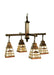 Native American patterns are a commonly used theme in the Southwest Mission style. The Meyda Tiffany Arrowhead Mission shade has a triple arrowhead and border in Bark Brown granite textured glass. Intersecting bands of Sand Beige on Alabaster White complete these geometric stained glass shades which are created using the famous Meyda copperfoil construction. The 4 shades are embraced by hardware featured in a Mahogany Bronze finish. Custom options include special sizes, designs, colors and dimmable energy efficient lamping such as LED. The chandelier is UL and cUL listed for damp and dry locations.