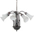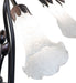 One of the most popular Louis Comfort Tiffany styled lamps on the market today, recreating his famous Favrile design from the early 1900's. This mottled Winter White shaded Seven Light Chandelier offers an attractive, delicate design featuring shades mouth blown of fine art glass. Lily shades are suspended from gracefully curved arms in this fixture finished by hand in Mahogany Bronze.