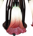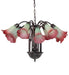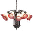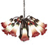 One of the most popular Louis Comfort Tiffany styled lamps on the market today, recreating his famous Favrile design from the early 1900's. This softly mottled Petal Pink shaded Twelve Light Chandelier offers an attractive, delicate design featuring shades mouth blown of fine art glass. Lily shades are suspended from gracefully curved arms in this fixture finished by hand in Mahogany Bronze.