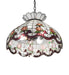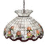 The Roseborder Pendant features an elegant crowned shade highlighted with a gridwork of Winter-kissed Icy Clear Fern Glass adorned with a Plum border of swirling ribbons and perfect Pink rosebuds accented with Green Leaf accents. This exquisite stained glass shade is created using the famous Meyda Tiffany copperfoil construction. The shade is paired with hardware featured in a Mahogany Bronze finish. UL and cUL listed for dry and damp locations. Each shade is a unique work of art with color variations based on natural ingredients inherent in the glass. Contact us if color matching is critical when ordering multiple items.