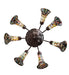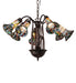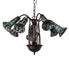One of the most popular Louis Comfort Tiffany styled lamps on the market today, recreating his famous design from the early 1900s. This Tiffany Pond Lily Chandelier offers an attractive, delicate design featuring seven art glass shades created with the famous Meyda Tiffany copperfoil construction. Each Lily shade features Blue, Green, Yellow, Amber, Pink Purple, White and Red art glass and is suspended from a stem delicately winding above a Lily pad hub finished by hand in Mahogany Bronze. The overall height ranges from 19 to 57 inches as the chain length can be easily adjusted in the field. UL and cUL listed for damp and dry locations. Each shade is a unique work of art with color variations based on natural ingredients inherent in the glass. Contact us if color matching is critical when ordering multiple items.