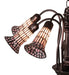 One of the most popular Louis Comfort Tiffany styled fixtures on the market. This chandelier re-creates his famous Favrile design from the early 1900s. This exquisite chandelier offers an attractive, delicate design featuring seven shades created with the famous Meyda Tiffany copperfoil construction. Pink and White Lily shades are suspended from stems delicately winding above a Lily pad base finished in Mahogany Bronze. Overall height ranges from 19 to 57 inches as the chain length can be easily adjusted in the field. UL and cUL listed for damp and dry locations. Each shade is a unique work of art with color variations based on natural ingredients inherent in the glass. Contact us if color matching is critical when ordering multiple items.