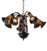 One of the most popular Louis Comfort Tiffany style chandeliers. This fixture re-creates his famous design from the early 1900s. The Pond Lily offers an attractive, delicate design featuring 7 art glass shades created with the famous Meyda Tiffany copperfoil construction. Lily shades featuring Honey Wispy and Purple art glass are suspended from stems delicately winding above a Lily pad hub finished in Mahogany Bronze. Overall height ranges from 19 to 57 inches as the chain length can be easily adjusted in the field. UL and cUL listed for damp and dry locations. Each shade is a unique work of art with color variations based on natural ingredients inherent in the glass. Contact us if color matching is critical when ordering multiple items.