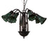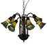One of the most popular Louis Comfort Tiffany styled fixtures on the market today. This exquisite chandelier re-creates his famous Favrile design from the early 1900s. This Pond Lily Chandelier offers an attractive, delicate design featuring seven shades created using the famous Meyda Tiffany copperfoil construction. Green Lily shades are suspended from stems delicately winding above a Lily pad base finished by hand in Mahogany Bronze. The overall height ranges from 19 to 57 inches as the chain length can be easily adjusted in the field. UL and cUL listed for damp and dry locations.
