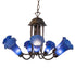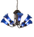 Recreating the popular Tiffany design from the early 1900s... This classic chandelier features 7 stunning Blue Favrile-style art glass shades complemented with an elegant curvaceous cast metal frame featuring a Mahogany Bronze finish. The overall height ranges from 18 to 53 inches as the chain easily adjusts in the field. The Pond Lily Chandelier is included in our American-designed, handcrafted Favrile Glass Lighting Collection. UL and cUL listed for dry and damp locations. Each shade is a unique work of art with color variations based on natural ingredients inherent in the glass. Please feel free to contact us if color matching is critical when ordering multiple items.