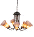 Recreating the popular Tiffany design from the early 1900s... This classic chandelier features 7 stunning Amber and Purple Favrile style art glass shades complemented with an elegant curvaceous cast metal frame featuring a Mahogany Bronze finish. The overall height ranges from 18 to 53 inches as the chain easily adjusts in the field. The Pond Lily Chandelier is included in our American-designed, handcrafted Favrile Glass Lighting Collection. UL and cUL listed for dry and damp locations. Each shade is a unique work of art with color variations based on natural ingredients inherent in the glass. Please feel free to contact us if color matching is critical when ordering multiple items.