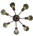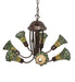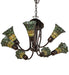 Inspired by the popular Tiffany design from the early 1900s... This classic chandelier offers a delicate design featuring 7 stunning shades created using Green art glass with the famous Meyda Tiffany copperfoil construction technique. An elegant curvaceous cast metal frame features a Mahogany Bronze finish. Overall height ranges from 18 to 53 inches as the chain easily adjusts in the field. The Pond Lily Chandelier is included in our American-designed, handcrafted Stained Glass Lighting Collection. UL and cUL listed for dry and damp locations. Each shade is a unique work of art with color variations based on natural ingredients inherent in the glass. Please contact us if color matching is critical when ordering multiple items.