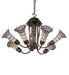 Inspired by the popular Tiffany design from the early 1900s... This classic chandelier offers a delicate design featuring 7 stunning shades created using Pink and White art glass with the famous Meyda Tiffany copperfoil construction technique. An elegant cast metal frame features a Mahogany Bronze finish. Overall height ranges from 18 to 53 inches as the chain easily adjusts in the field. The Pond Lily Chandelier is included in our American-designed, handcrafted Stained Glass Lighting Collection. UL and cUL listed for dry and damp locations. Each shade is a unique work of art with color variations based on natural ingredients inherent in the glass. Please contact us if color matching is critical when ordering multiple items.