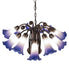 Recreating the famous Tiffany design from the early 1900s. This elegant chandelier features 12 White and Blue Favrile Style art glass shades. An elegant cast metal hub embraces the Lily shades with floral-style fitters finished by hand in Mahogany Bronze. The Pond Lily Chandelier is included in our American-designed, handcrafted Favrile Glass Lighting Collection. UL and cUL listed for dry and damp locations. Each shade is a unique work of art with color variations based on natural ingredients inherent in the glass. Please get in touch with us if color matching is critical when ordering multiple items.