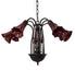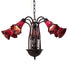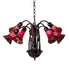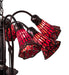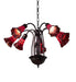 One of the most popular Louis Comfort Tiffany styled fixtures on the market today. This chandelier re-creates his famous design from the early 1900s. This exquisite Pond Lily Chandelier offers an attractive, delicate design featuring seven delicate shades created with the famous Meyda Tiffany copperfoil construction. The Scarlet Red Lily shades are suspended from stems delicately winding above a Lily pad base finished in Mahogany Bronze. The overall height ranges from 19 to 57 inches as the chain length can be easily adjusted in the field. UL and cUL listed for damp and dry locations. Each shade is a unique work of art with color variations based on natural ingredients inherent in the glass. Contact us if color matching is critical when ordering multiple items.