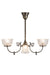 Inspired by lighting fixtures that were powered with both gas and electricity during a transitional period, the original featured two up lights that were used by burning gas while the two downlights worked with electricity. Today this classic chandelier features four shades which are illuminated with 60W medium base lamps and reveal a lovely Wreath and Garland pattern in Frosted and Clear glass. Handcrafted of Solid Brass in the USA by Meyda artisans, the chandelier is featured in a hand applied Antique Brass finish. Custom sizes, styles and colors and dimmable energy efficient lamping are available. This fixture is UL and cUL listed for damp and dry locations.