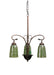 HONEYDEW-GREEN GLASS CASCADES IN A GEOMETRIC GRID ON ELONGATED TIFFANY STYLE HAND CRAFTED SHADES WHICH ARE SUSPENDED FROM GRACEFULLY CURVED ARMS IN THIS ELEGANT 3 LIGHT CHANDELIER.