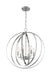 The Pendleton Brushed Nickel Pendant features a six-light cluster surrounded with four concentric circular bands. The 22 inches diameter is the perfect sized orb to be used as a single light source or several can be grouped together in a counter or island design. The addition of nostalgia styled candelabra bulbs completes this popular style.