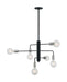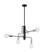 The Ryder six-light chandelier is a sleek, refined version of the on-trend bare bulb styling. The asymmetrical design of this black and polished nickel chandelier is visually stimulating and speaks to both industrial modern and minimalist designs. The adjustable arms provide individual personalization, while the coordinating finished socket enclosures add to the design of the chandelier while providing a smooth transition to your selected nostalgic bulb.