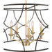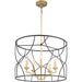 A five-light inner cluster in Brushed Brass appears to float inside a Black geometric outer cage in this Landree Collection chandelier. The frame is designed to dramatically surround each fixture, presenting depth, dimension and beauty. The exaggerated scale and elegant accents are suitable for Modern and Luxury design styles.