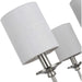 Inspired at its roots by an understated beauty and a breathtaking formal elegance, the Bonita Collection Six-Light Brushed Nickel Chandelier will make a stunning addition to any luxurious living space. Narrow drum shades circle the structure's center as they are held in place by silver candlestick light bases supported by elegantly curved arms. A round, shiny base serves as a decorative foundation for the light fixture.