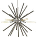 Fall in love with the starburst form reinvented by a rustic twist with the Thorpe Collection 5-Light Brushed Nickel Mid-Century Modern Chandelier Light. Angular lines coated in a faux Barnwood finish are accented by a beautiful brushed nickel center and smooth stem. Light sources extend from the center in a circular fashion for a softer, playful ambiance.