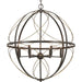 An airy artful pendant, Brandywine's silhouette features an interlocking sphere with decorative details. The elegant frame highlights a juxtaposition of bold accents and delicate, hand gilded wire accents, finished in an Antique Bronze finish. Capturing a timeless look, this six-light pendant is idea for Farmhouse or Transitional interior settings.