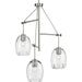 Infuse your home with the subtle industrial flair of this three-light pendant. Inspired by the outstanding architecture of suspension bridges, the light fixture features fabric cords that attach to beautiful brushed nickel light bases and a smooth round ceiling plate. Clear glass shades with rolled rims at their bottoms add an extra touch of artisan inspiration.