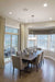 Four-light pendant that features a concentric circular pattern in a brushed nickel metal shade that surrounds etched parchment glass.