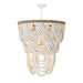 Cascading layers of soft-distressed white wooden beads in the Lorelei Chandelier provide a graceful display over a jute-wrapped circular frame. The fixture is both elegant and versatile, equally beautiful in living and dining spaces throughout the home.