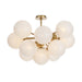 The Shine Flush Mount epitomizes contemporary sophistication with a touch of mid-century modern influence. The fixture's white swirled glass spheres are classic and glamorous, set with natural brass accents. Ideal for turning underutilized spaces into vibrant living areas, Shine transcends conventional lighting, making a statement that resonates.