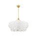 Translucent square glass forms wrapped in layers around the cascading drum silhouette of Jacik, creating an eye-catching statement. Crafted from Candy Glass, each piece is defined by a delicate bubble texture that adds to the artistry and depth of this chandelier. To complement the artistry, Jacik is finished in Vintage Gold Leaf with graceful pins supporting each glass piece like jewelry.