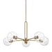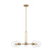The Codyn five light single tier chandelier in Satin Brass is a contemporary take on a classic mid-century design. Clear glass shades with open-ended spheres accent the elongated keyhole strap detail, for a clean look. This minimalist collection relies on subtle details to create visual interestââ¬â¹